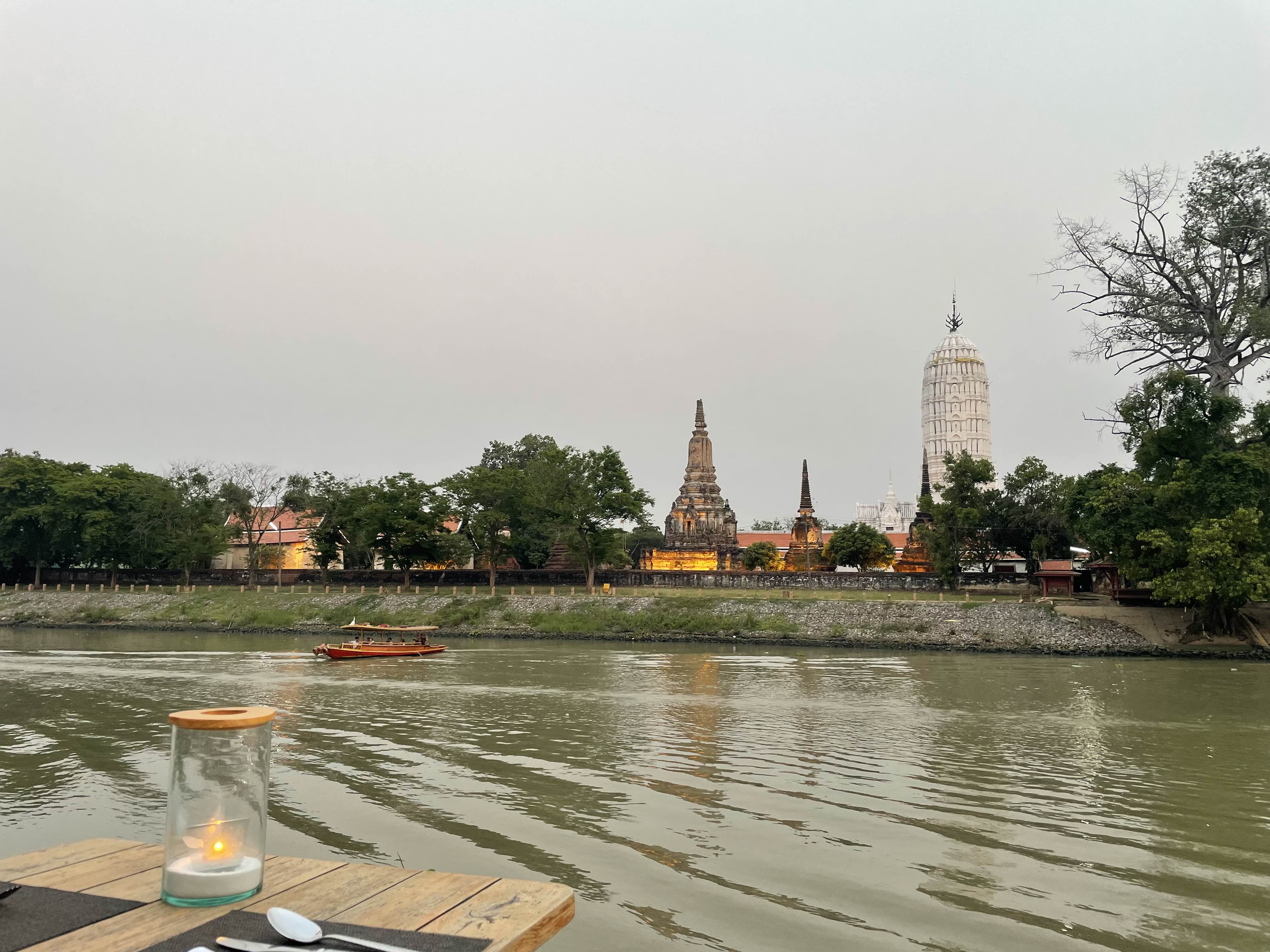 저희는 강가 바로 앞에 있는 살라아유타야이터리앤바 sala ayuttaya eatery and bar 와 빙빙 돌아 올라가면 옥상에 있는 루프탑라운지앤바 rooftop lounge and bar를 이용했는데 사진찍으며 식사하거나 음료 마시기에 나쁘진 않았어요. 역시나 사진에 안 보이는……뭐 그렇지만 잠시 들르는 거닌까 이 정도는 뭐~ 특히나 강가 옆 이터리앤바에 앉아 강바람 맞으며 식사하는 건 기분전환하기엔 더없이 좋았어요. 구글에 음식후기가 별로 안 좋길래 기대를 하지 않아서 그런가 전 음식맛도 괜찮았어요. 그리고 음식가격엔 자릿세도 포함해야하니 가격도 그 정도면 허용가능한 정도였어요.